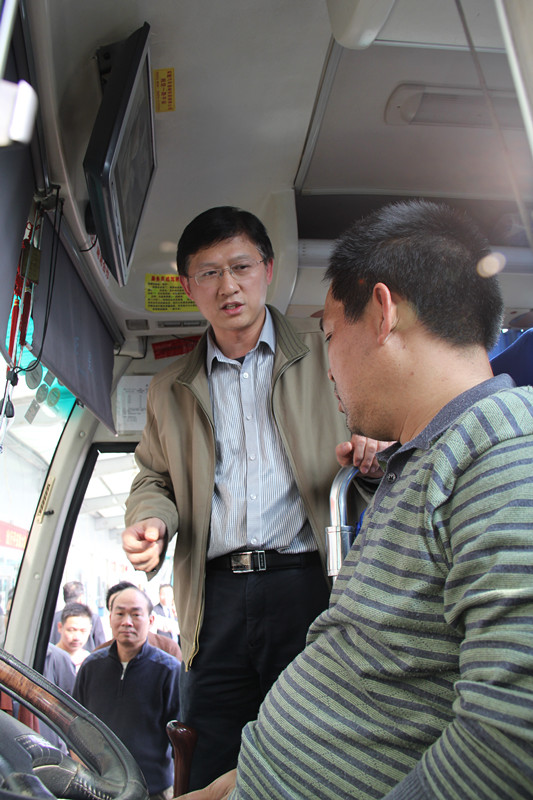 自治区交通运输厅黄汝生副厅长一行开展2013年春节安全检查慰问。自治区交通运输厅综合运输处黄永忠处长、水运处刘启柱副处长、政策法规处古雅明副处长、自治区道路运输管理局黄天国局长等参加本次检查慰问。黄汝生副厅长一行先后到钦州汽车南站、防城港市第一公路客运中心、广西东兴万通报关报检综合办证大厅、东兴口岸国际道路运输管理处等进行检查指导慰问,仔细查看了客运站的候车室、售票大厅、三品检测仪、检测台、车辆出站口等安全生产制度规范的落实情况,与在岗的一线员工进行亲切交谈与慰问,具体指导了运输企业春运期间的运力准备、服务措施准备等情况,要求运输企业要确保客运车辆安全行驶,加强公共服务能力,使交通运输建设更加完善,更好为经济发展和百姓出行服务。