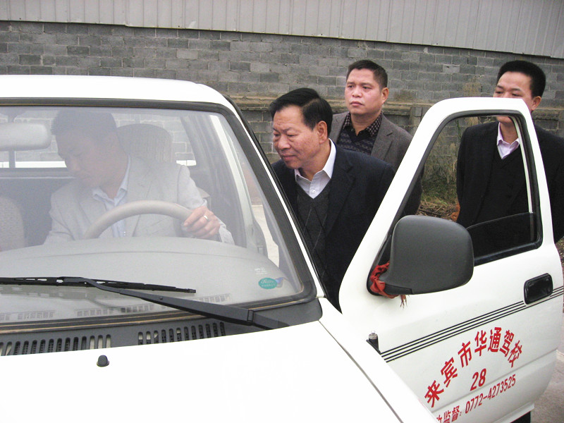 图为:自治区道路运输管理局孙永生书记一行视察来宾市驾校。
