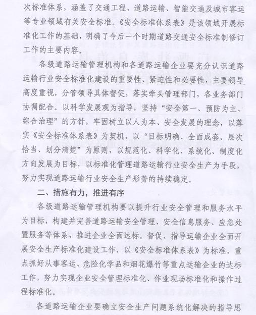 《关于落实交通运输部〈道路交通安全标准...