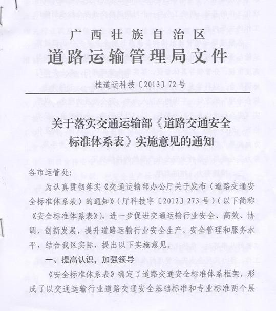 《关于落实交通运输部〈道路交通安全标准体系表〉实施意见的通知》