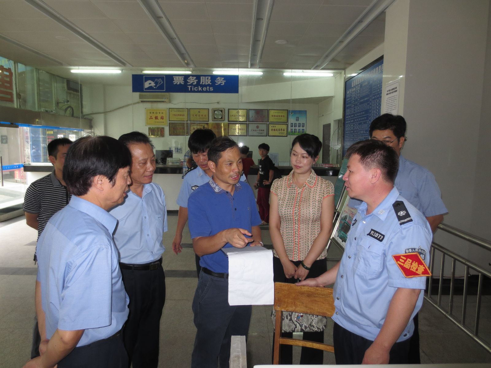 图为:自治区道路运输管理局张小健副局长在玉林市东郊汽车站检查指导